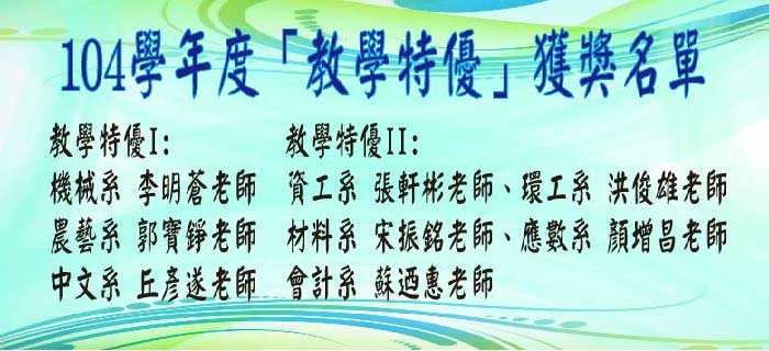 104學年度「教學特優」獲獎名單公告