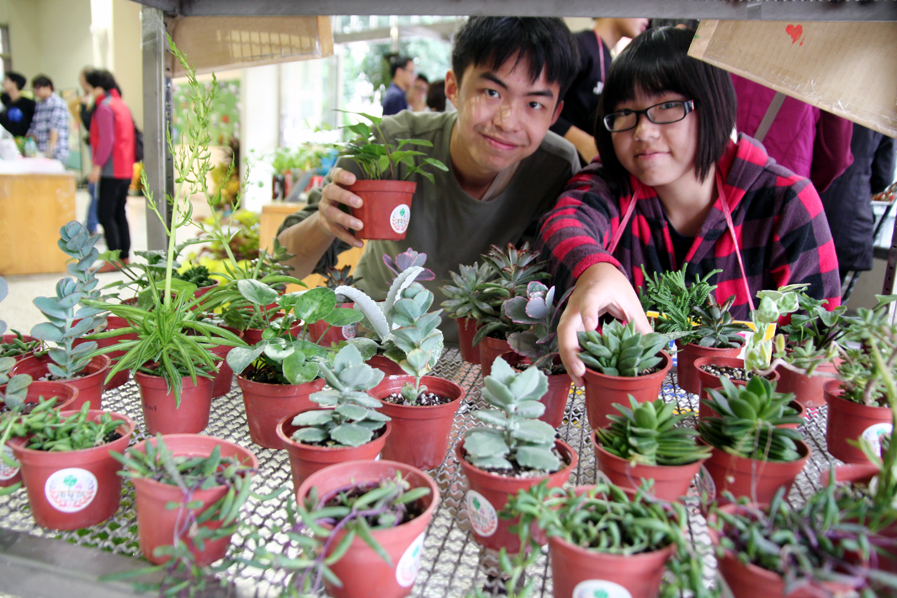【圖文/媒體公關組】國立中興大學園藝學系12月7日至14日舉辦一年一度的園藝週活動,今年以「生活園藝—園來,我們這麼近」為主題,展場包含展覽區、民眾DIY區、花草販賣區、手工自製產品區以及書展區,民眾可在此選購由學生種植出的各式小盆栽,如多肉植物、香草植物及室內觀葉植物等,同時也有學生解說植物栽種的小知識,教導民眾用簡單的方式自行繁殖植物。