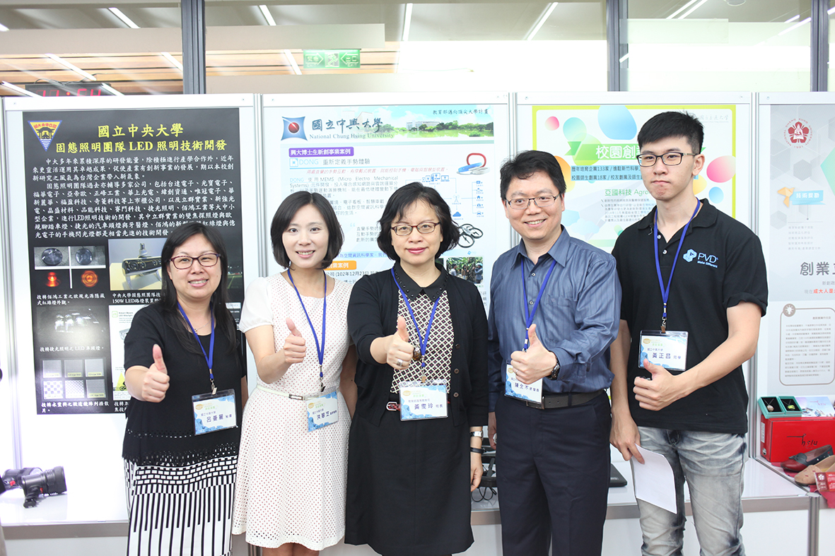 從左至右:呂曼麗秘書、洪慧芝副研發長、高教司黃雯玲司長、陳全木研發長、黃正昌碩士生 從左至右:許鈺群大四生、趙智凡博士生、呂曼麗秘書、洪慧芝副研發長、陳全木研發長、黃正昌碩士生。