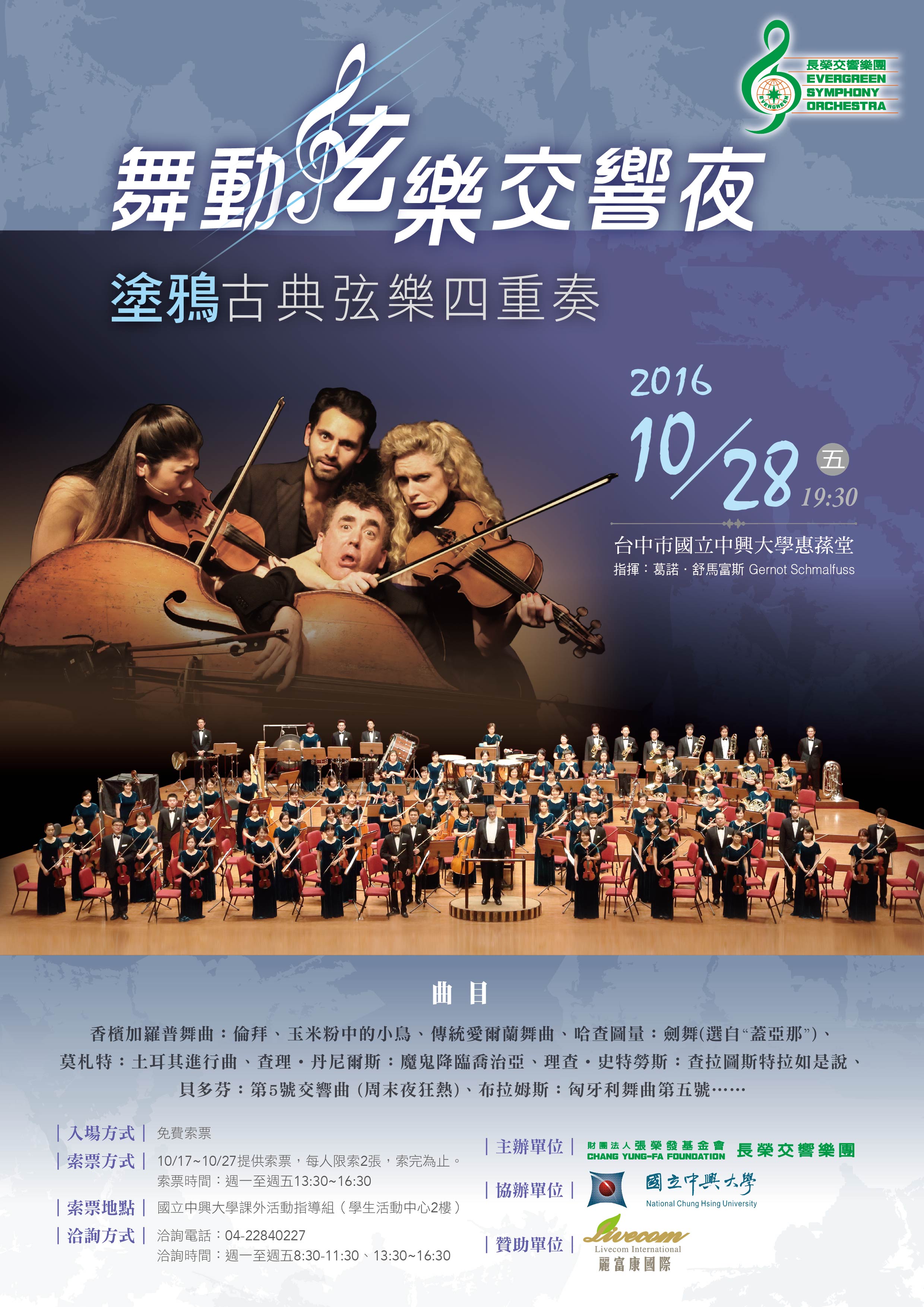 「舞動弦樂交響樂」音樂會謹訂於10月28日19時入場,歡迎索票參加。