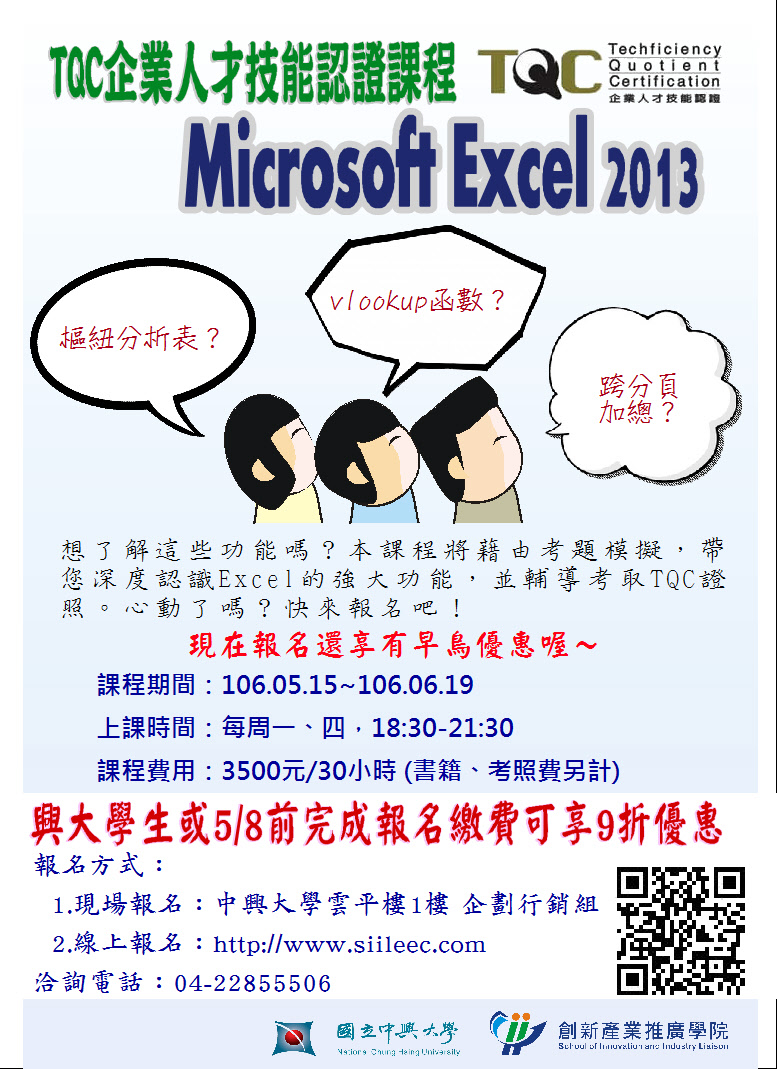 TQC企業人才技能認證課程-Excel 2013【確定開班!】